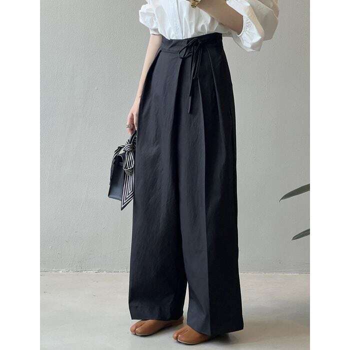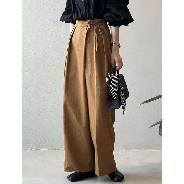 ウェストタイのデザインがポイントのタックパンツ。