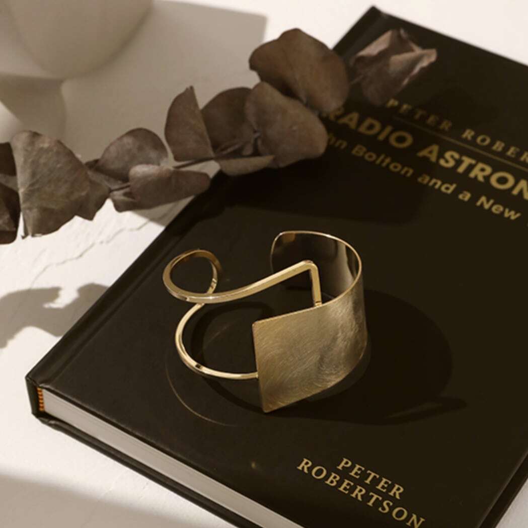大きめのスクエアがアクセントのワイドブレスレット。