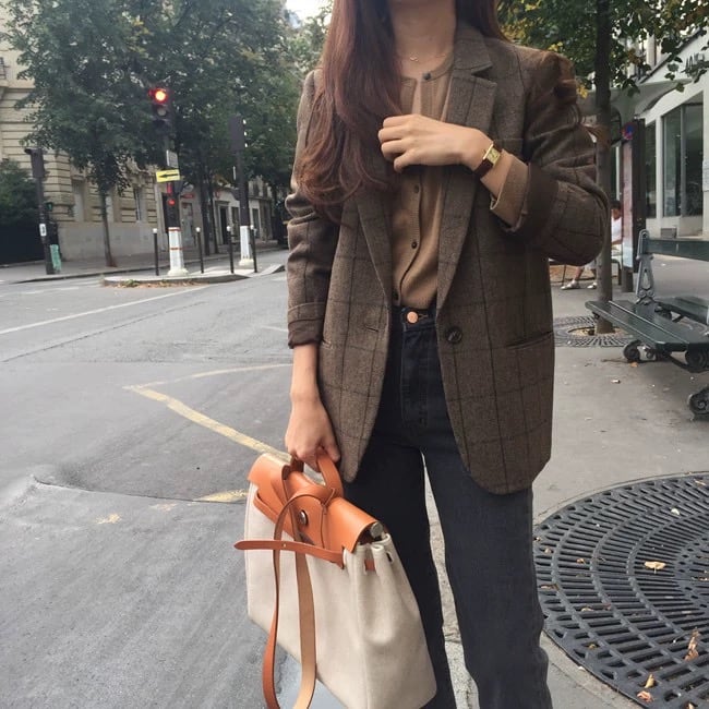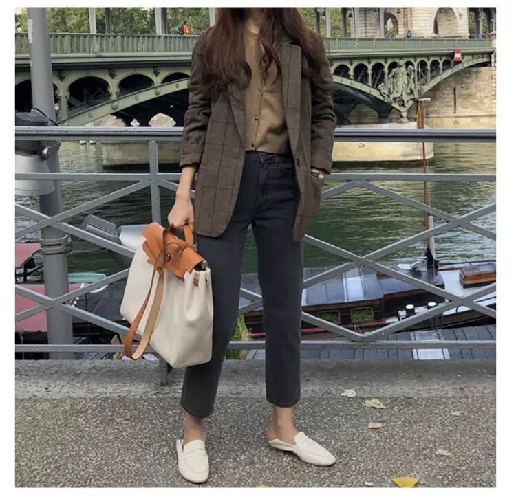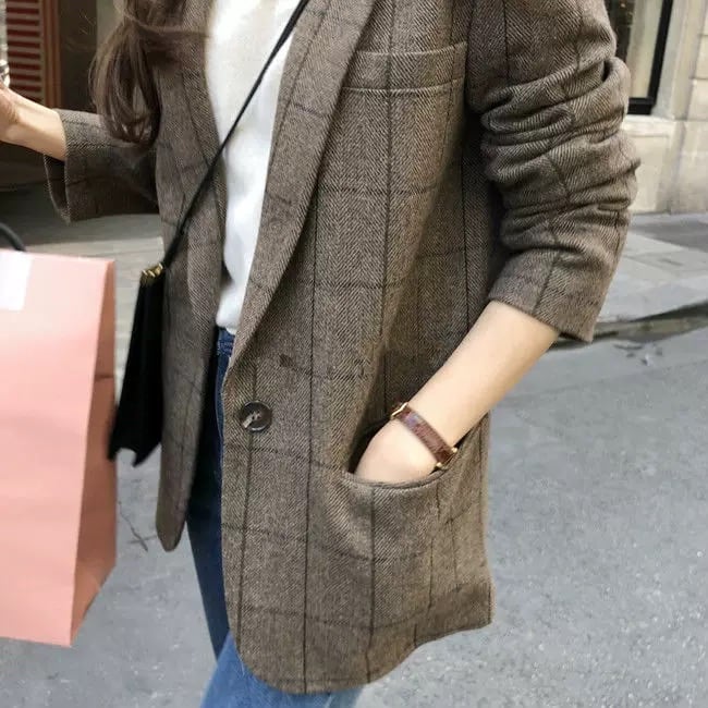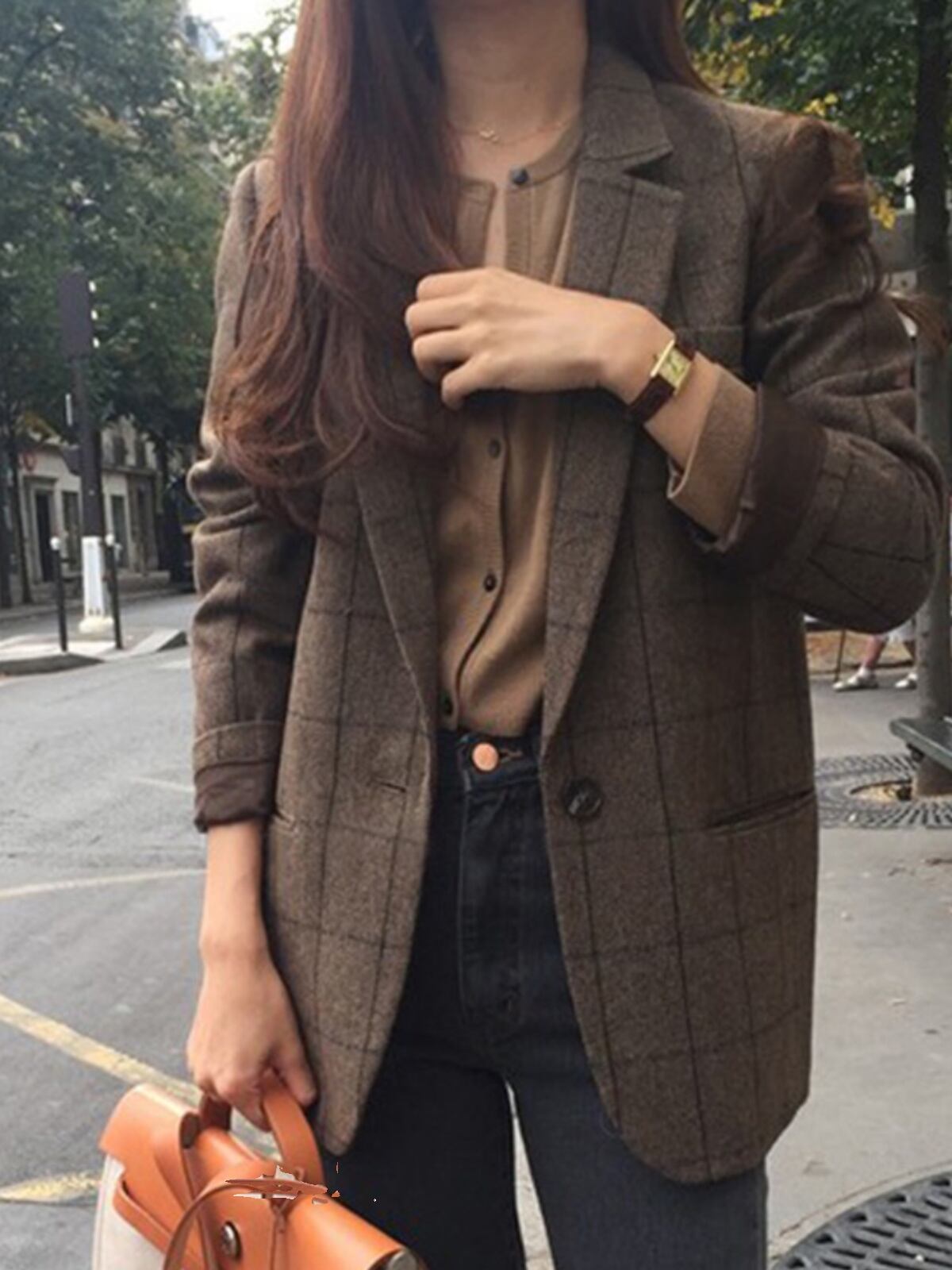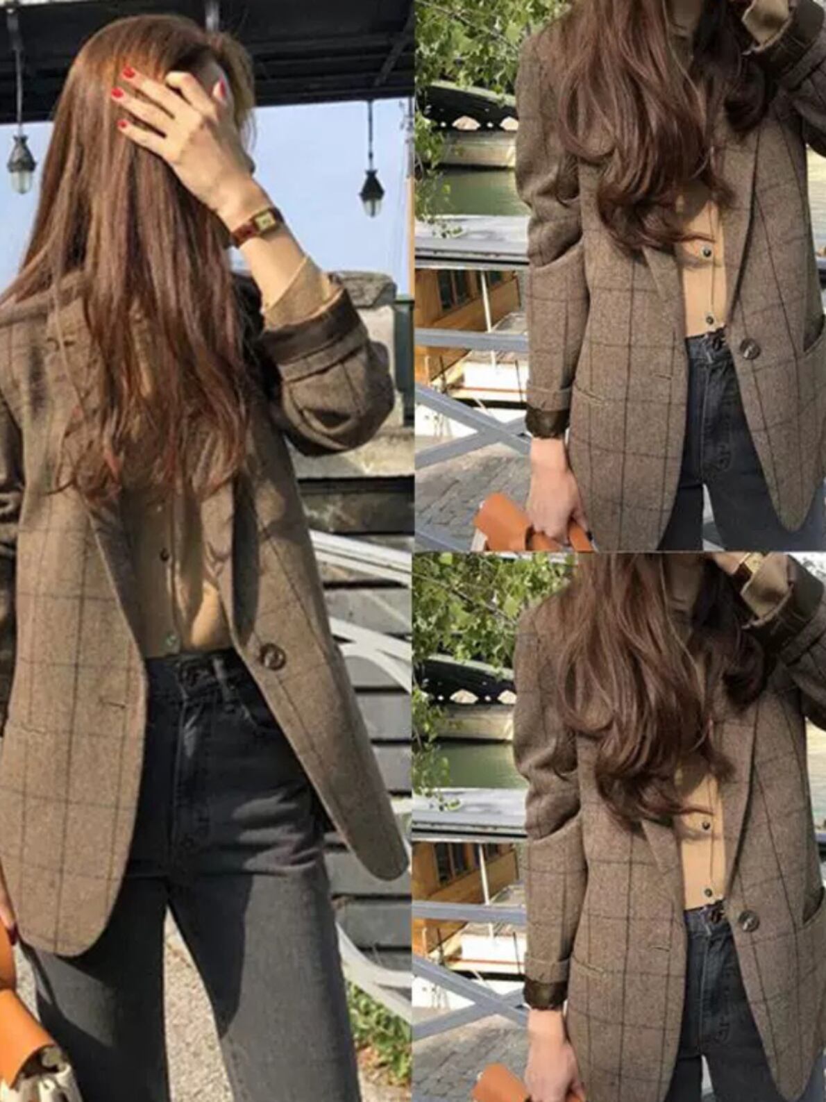 カジュアルにもキレイめにも着こなせる細め格子柄ジャケット。