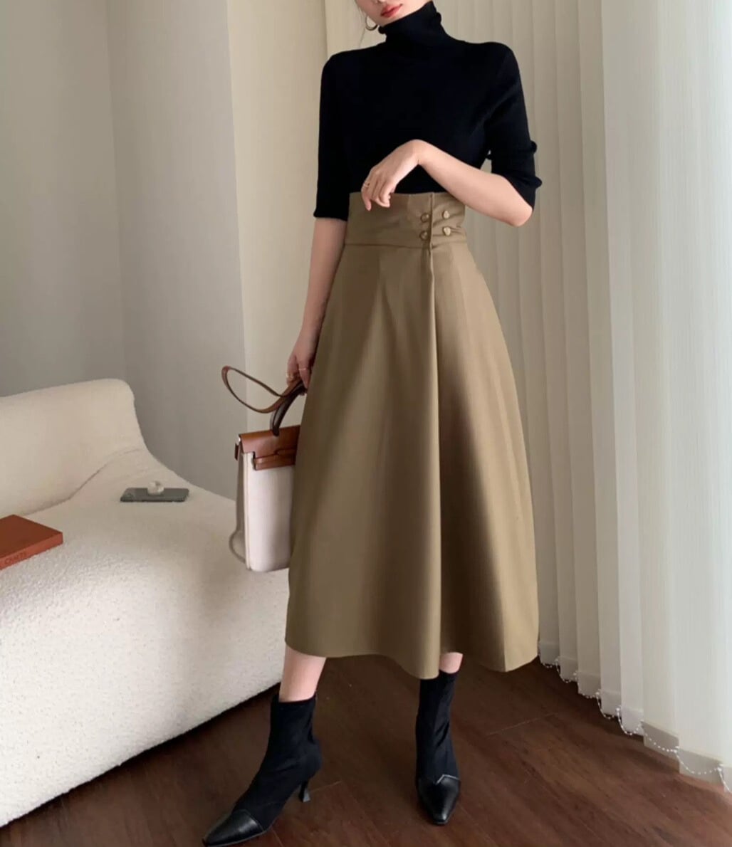 ミディ丈で上品な印象を与えてくれるAラインフレアスカート。