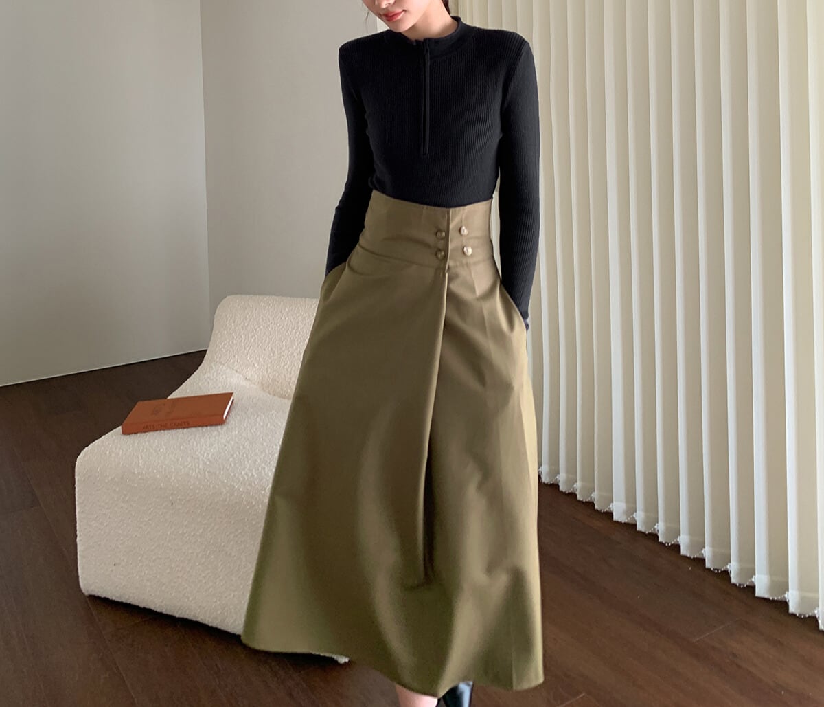 High Waist Midi roll-up Flared Skirt A25121