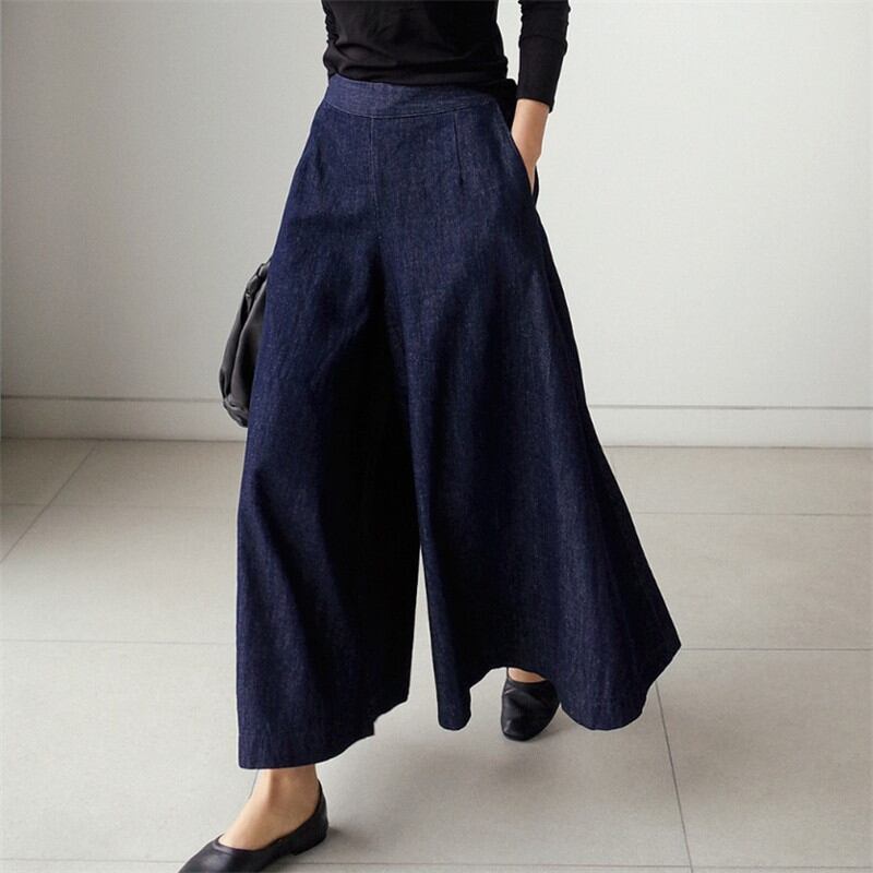 Wide Full Length Denim Pants A25148