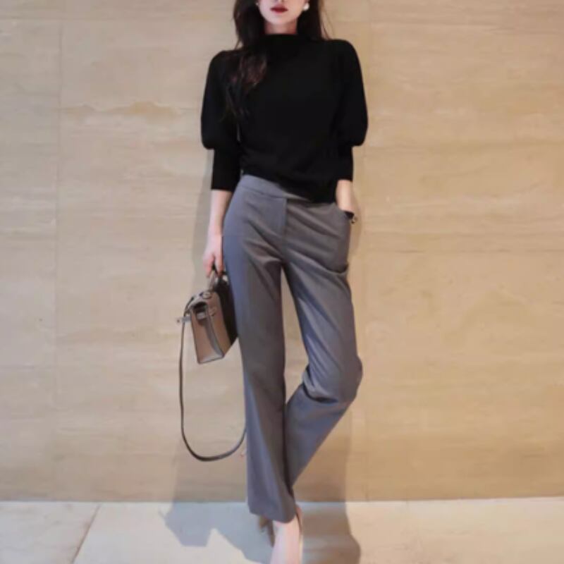 Puff Sleeve Long Sleeve Rib Mock Neck Knit A25154