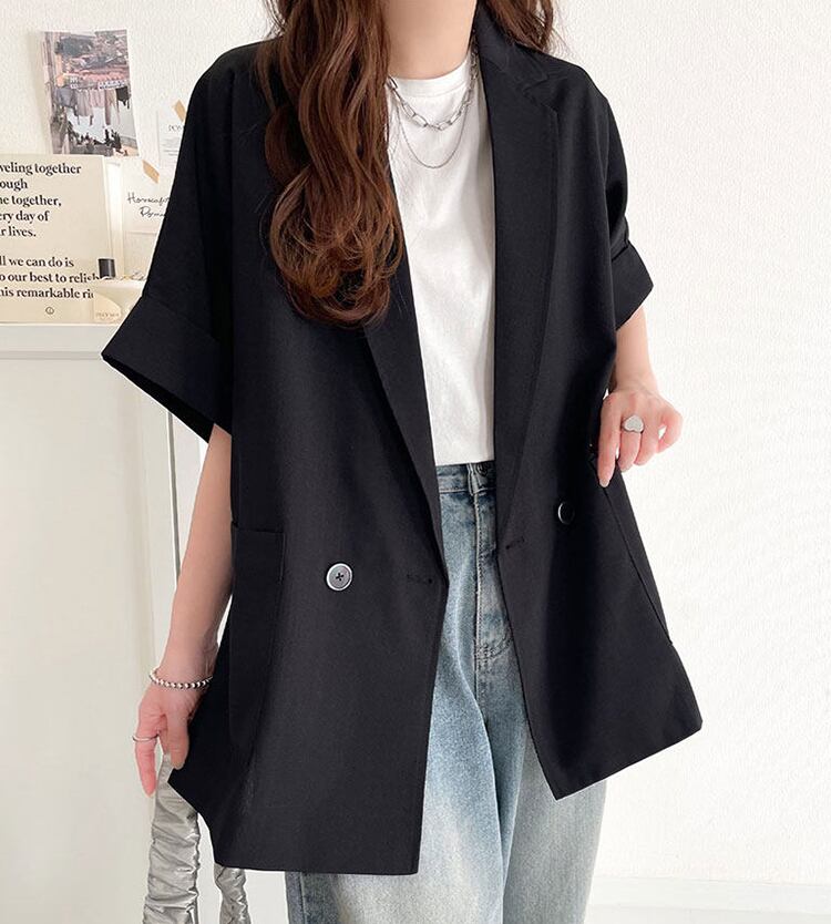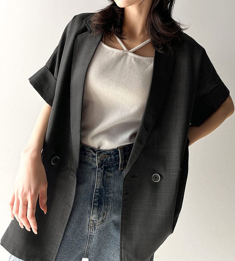 ウエスト丈でスタイルアップ効果のある半袖ジャケット。
