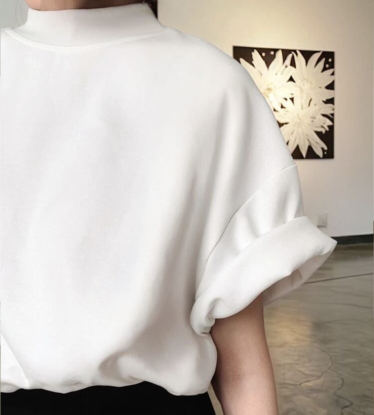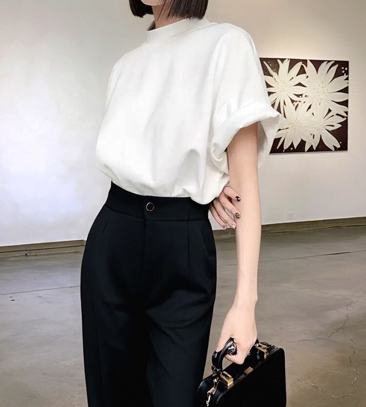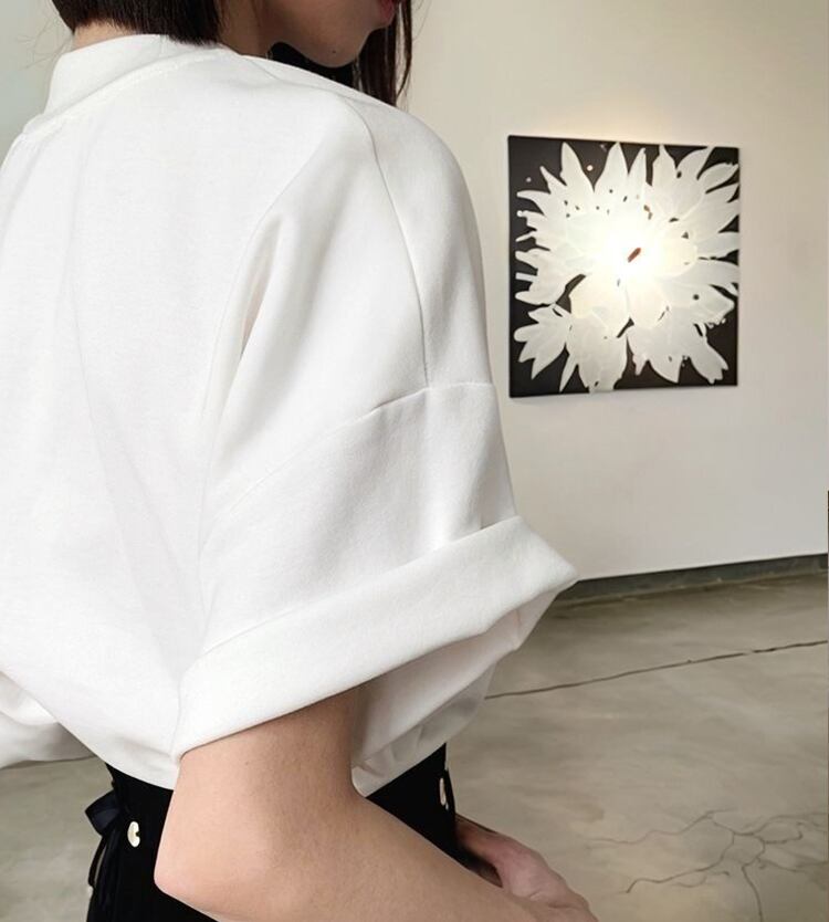 カジュアルながらも上品な印象を与えてくれるモックネックTシャツ。