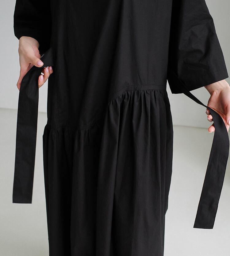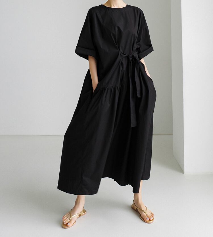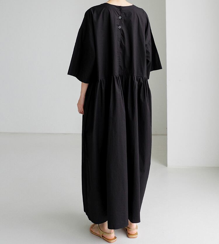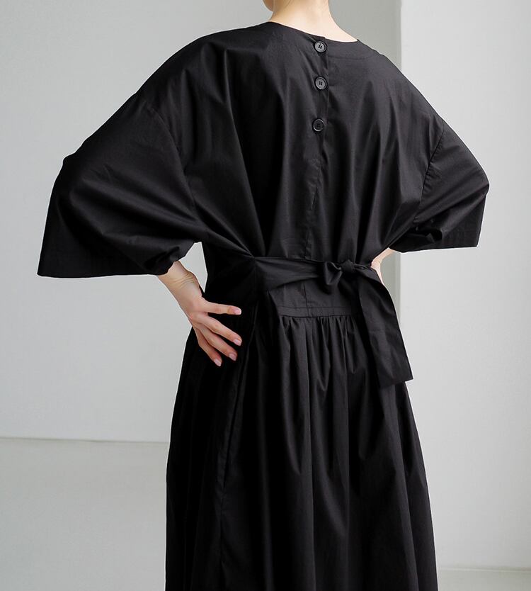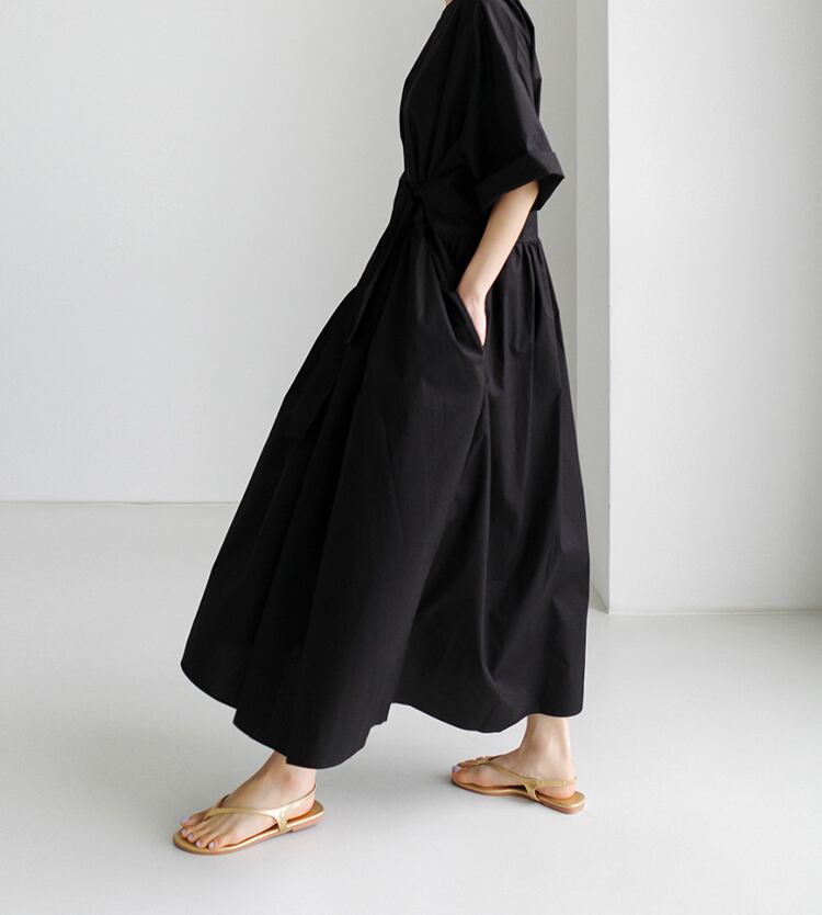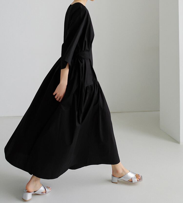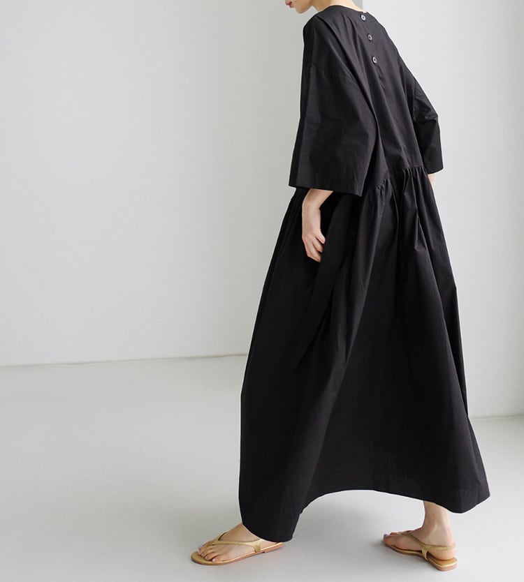 ギャザーがポイントのミディ丈ワンピース。