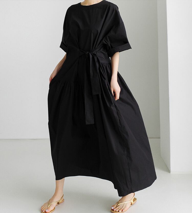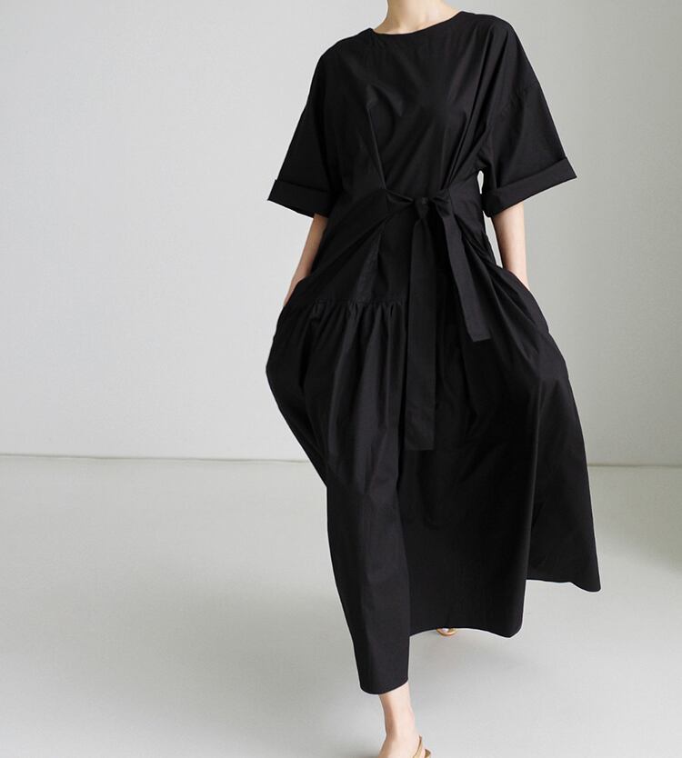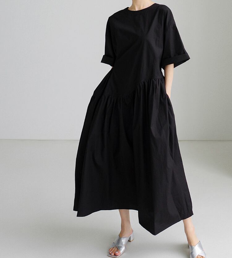 Roll-up Sleeve Midi-length Dress A26106