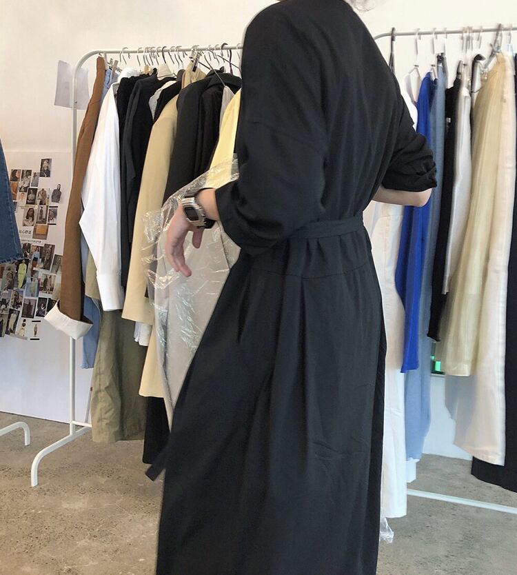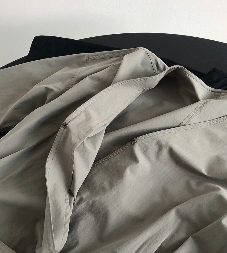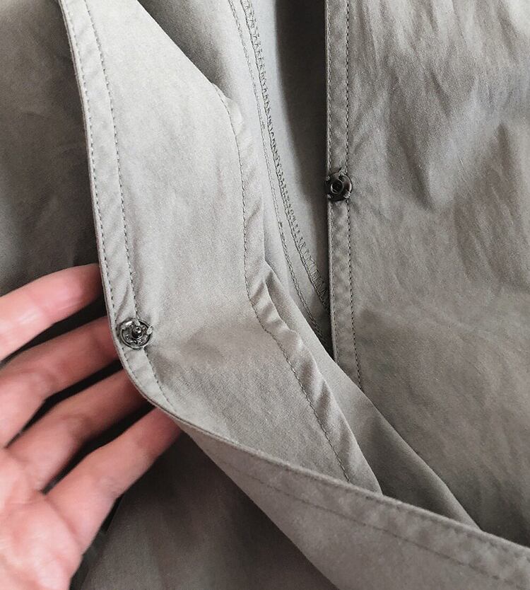 内側には隠しボタンを施しているため、胸元の開きやインナーのチラ見えを気にせず